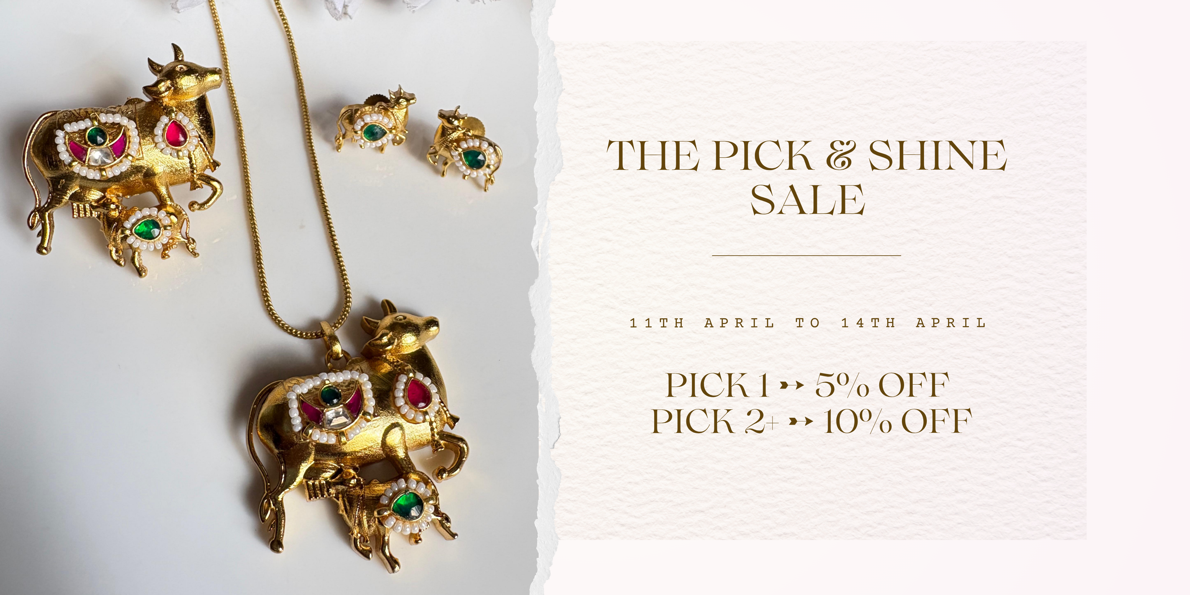Kamla Gomayi – Minimal Cow Motif Kundan Pendant Necklace with Matching Stud Earrings | Alankrent