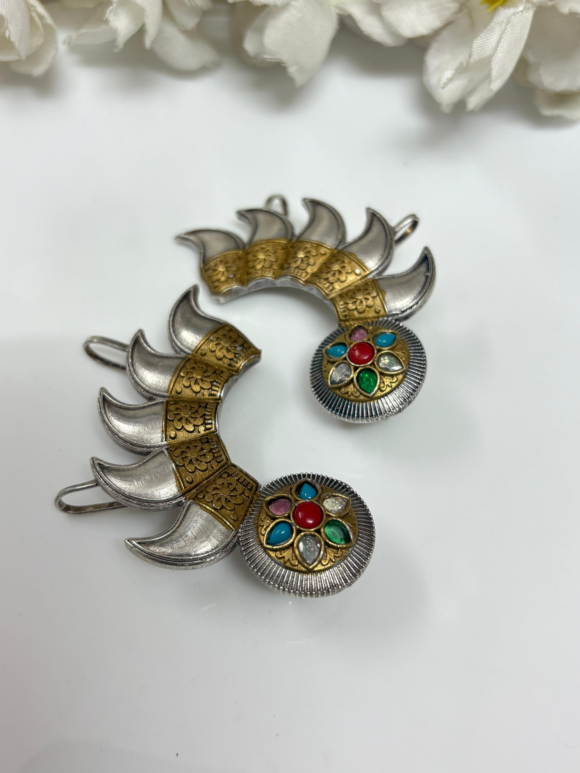 Turn heads with this Dual Tone Kundan Ear Cuff, a perfect blend of traditional craftsmanship and bold contemporary design.