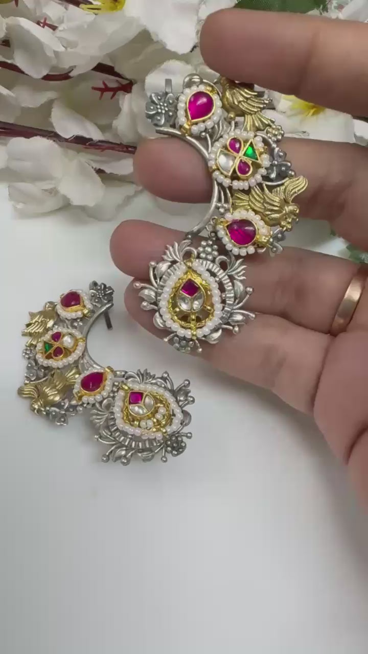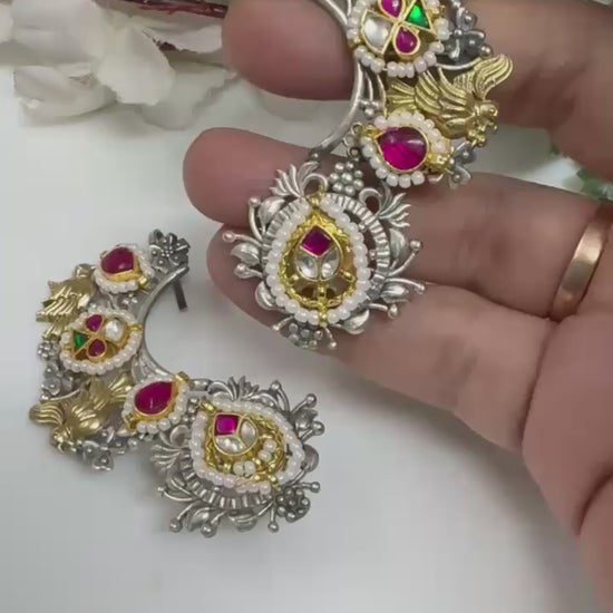 Dual-Tone Kundan Fusion Silver Lookalike Earcuffs