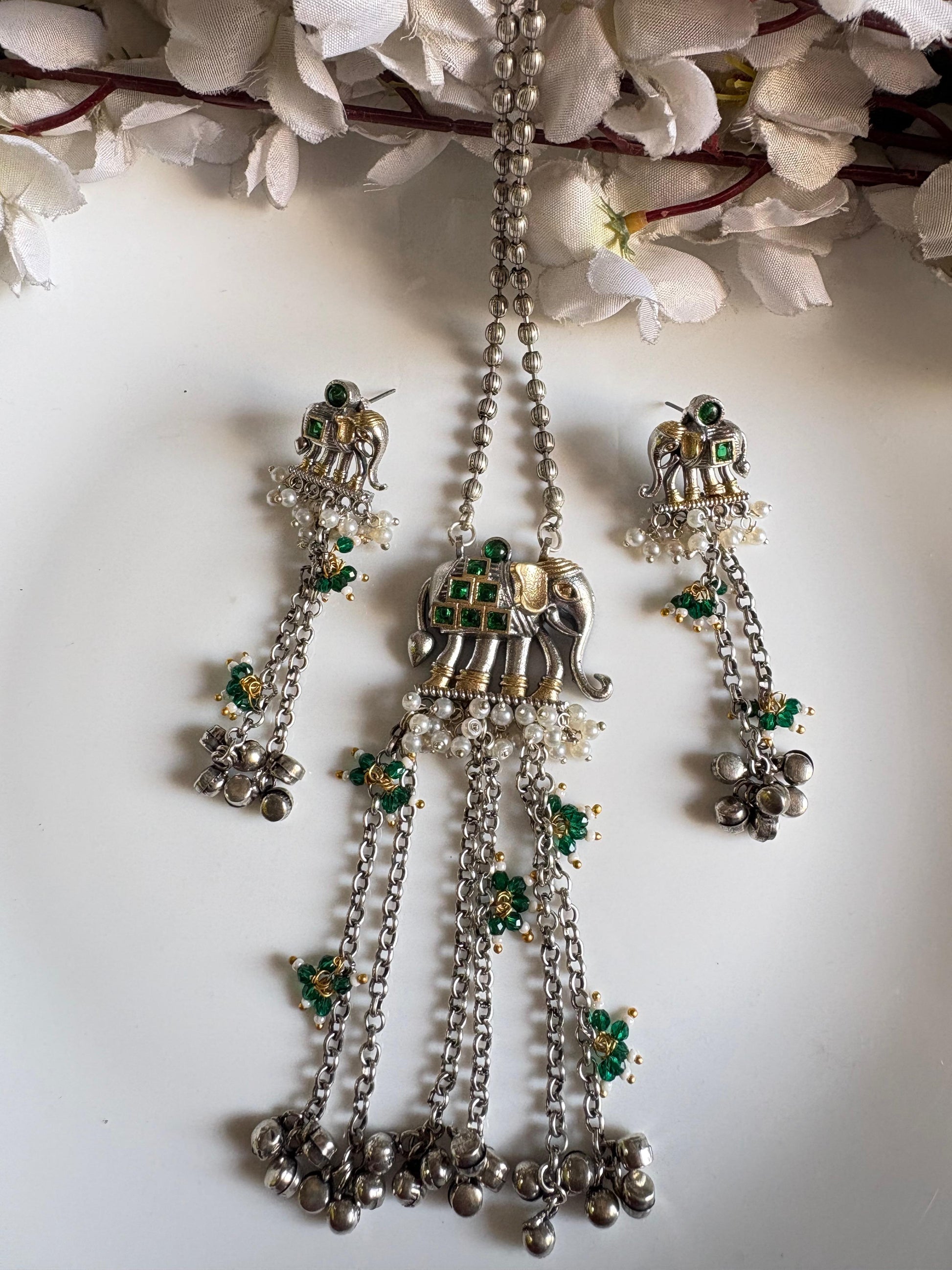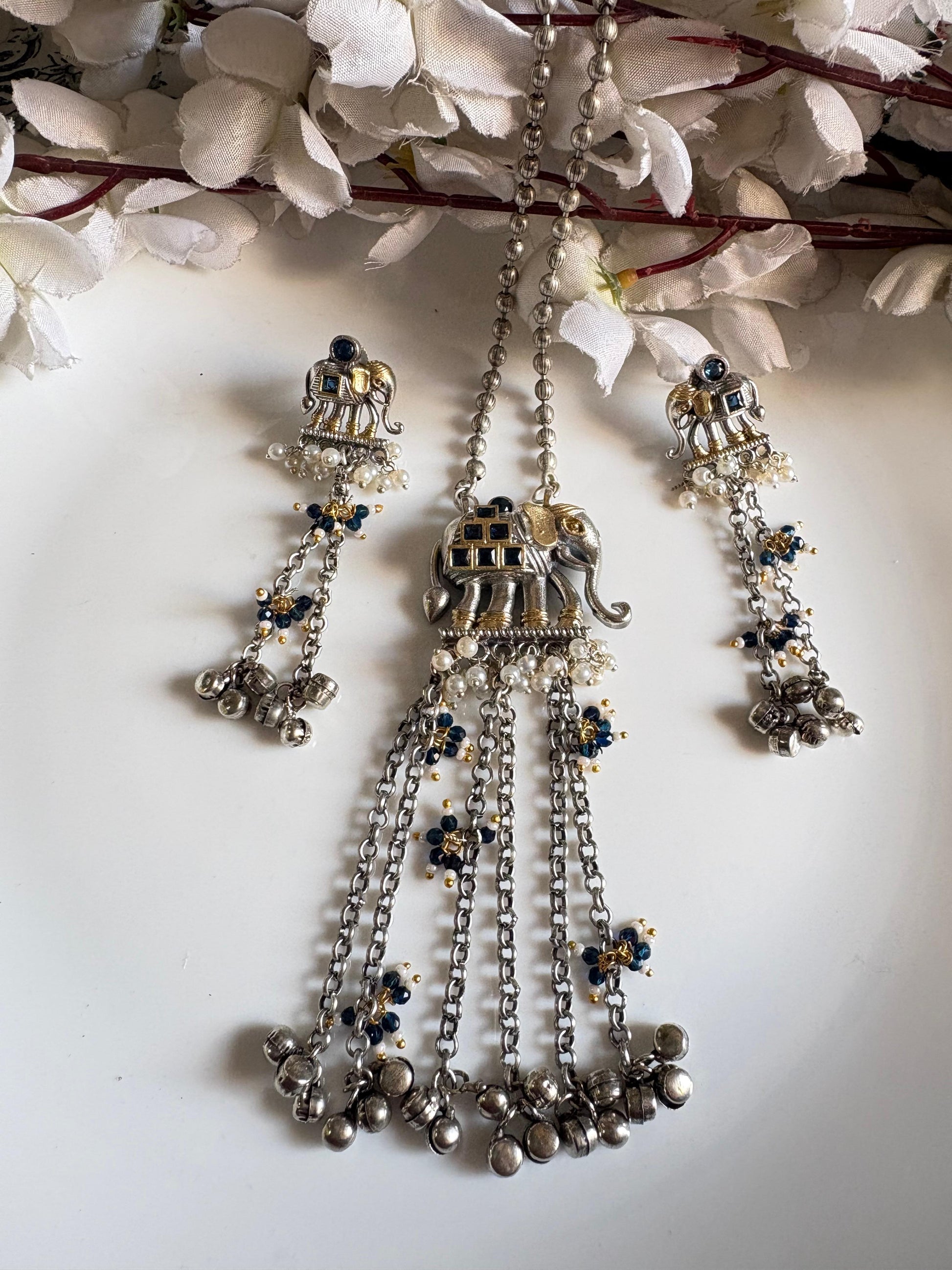Royal Elephant Silver Necklace Set with Matching Earrings